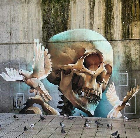 Выполняется аэрозолью и акриловыми красками. Маркеры, кисти, аэрозоль, губки.